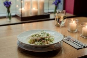 Scotts Hotel Fish Dish Special Offer- dinner bed and breakfast Deserts at Scotts Hotel , brownie and ice cream Scotts Hotel food fish Dinner setting at courtyard restaurant Courtyard restaurant at Scotts Hotel Killarney Courtyard restaurant, dinner setting